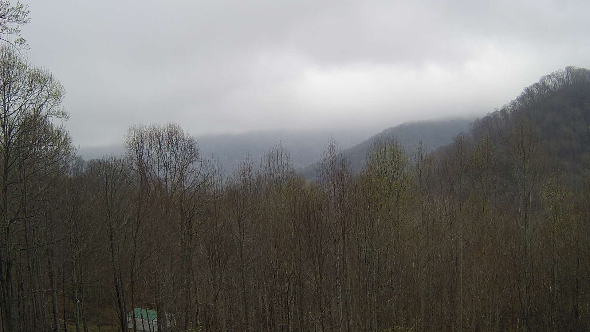 View of Mt. Mitchell and a portion of the Black Mountain Range in Yancey County, NC from a webcam positioned on the south side of Blue Knob pointing southeast. The peaks in the center of the view, from left to right, are Balsam Cone (6600 ft.), Big Tom (6526 ft.), Mt. Craig (6647 ft.), and Mt. Mitchell (6684 ft.)