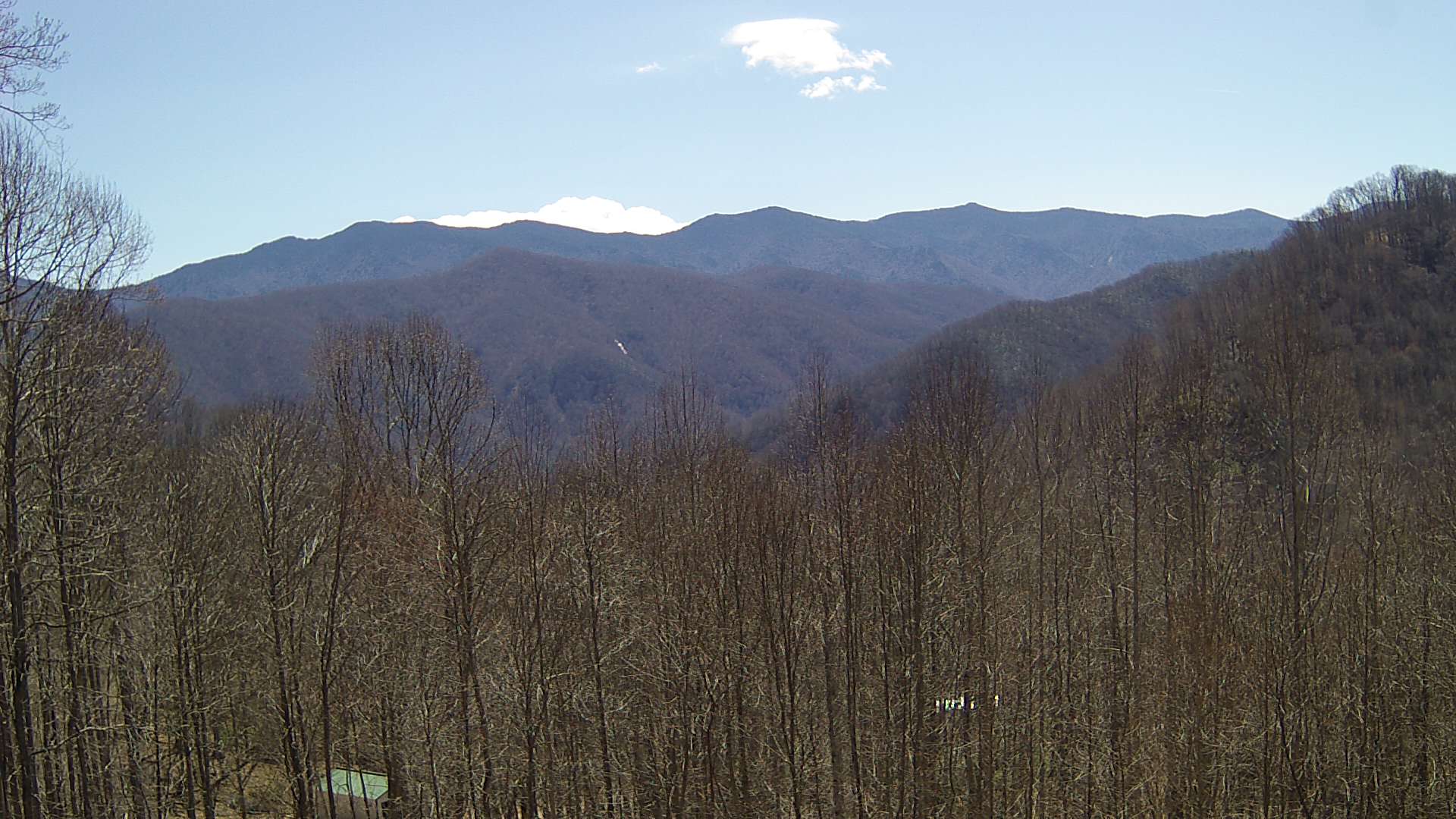 View of Mt. Mitchell and a portion of the Black Mountain Range in Yancey County, NC from a webcam positioned on the south side of Blue Knob pointing southeast. The peaks in the center of the view, from left to right, are Balsam Cone (6600 ft.), Big Tom (6526 ft.), Mt. Craig (6647 ft.), and Mt. Mitchell (6684 ft.)