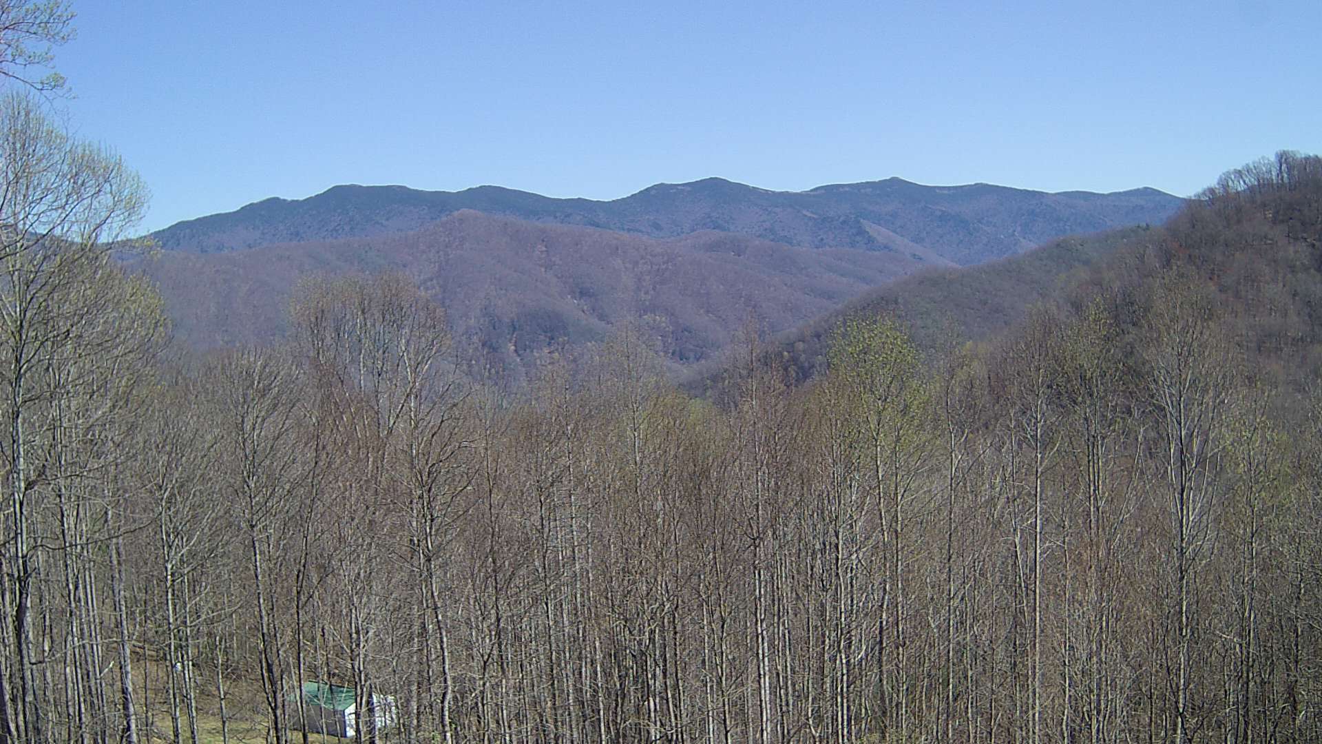 View of Mt. Mitchell and a portion of the Black Mountain Range in Yancey County, NC from a webcam positioned on the south side of Blue Knob pointing southeast. The peaks in the center of the view, from left to right, are Balsam Cone (6600 ft.), Big Tom (6526 ft.), Mt. Craig (6647 ft.), and Mt. Mitchell (6684 ft.)