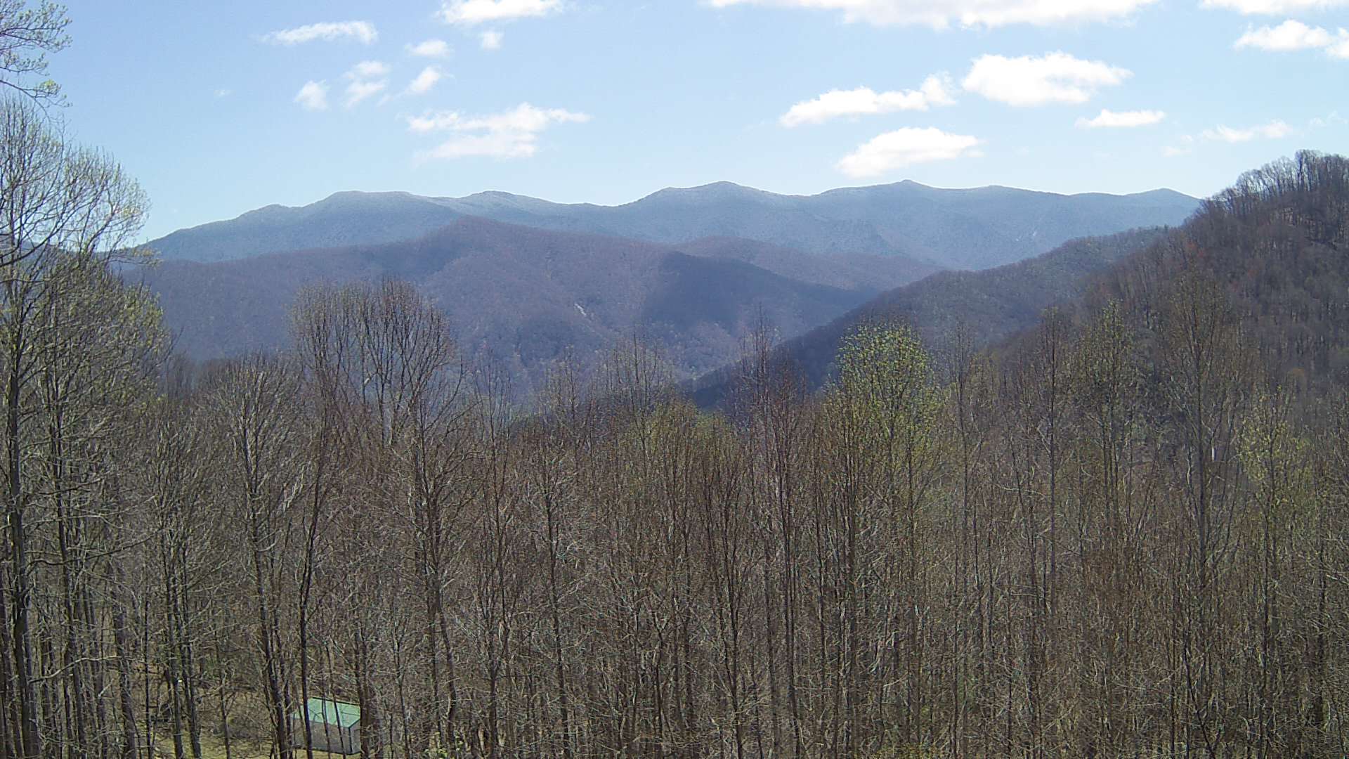 View of Mt. Mitchell and a portion of the Black Mountain Range in Yancey County, NC from a webcam positioned on the south side of Blue Knob pointing southeast. The peaks in the center of the view, from left to right, are Balsam Cone (6600 ft.), Big Tom (6526 ft.), Mt. Craig (6647 ft.), and Mt. Mitchell (6684 ft.)