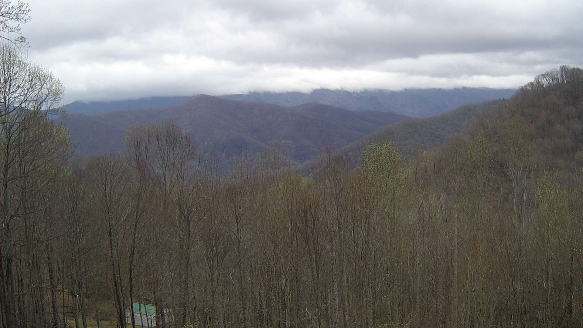 View of Mt. Mitchell and a portion of the Black Mountain Range in Yancey County, NC from a webcam positioned on the south side of Blue Knob pointing southeast. The peaks in the center of the view, from left to right, are Balsam Cone (6600 ft.), Big Tom (6526 ft.), Mt. Craig (6647 ft.), and Mt. Mitchell (6684 ft.)