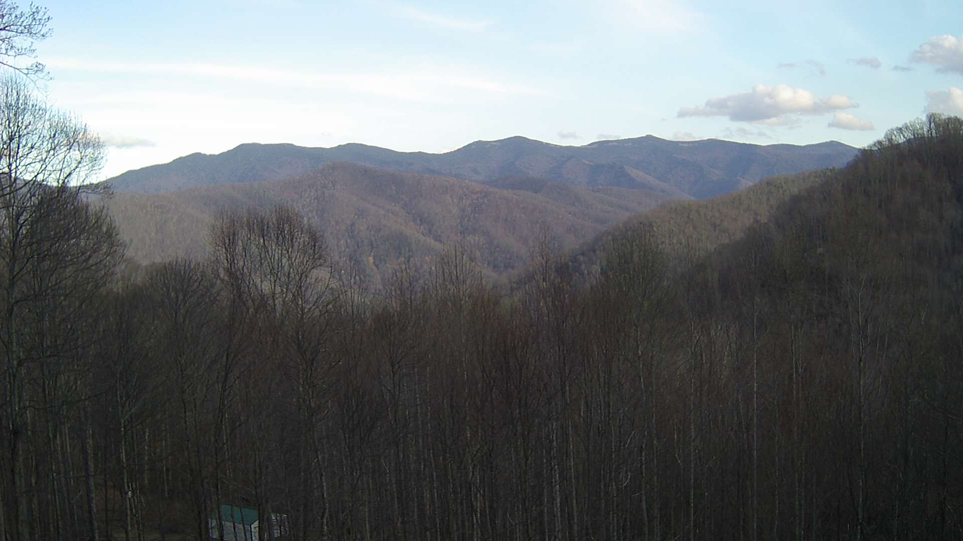 View of Mt. Mitchell and a portion of the Black Mountain Range in Yancey County, NC from a webcam positioned on the south side of Blue Knob pointing southeast. The peaks in the center of the view, from left to right, are Balsam Cone (6600 ft.), Big Tom (6526 ft.), Mt. Craig (6647 ft.), and Mt. Mitchell (6684 ft.)
