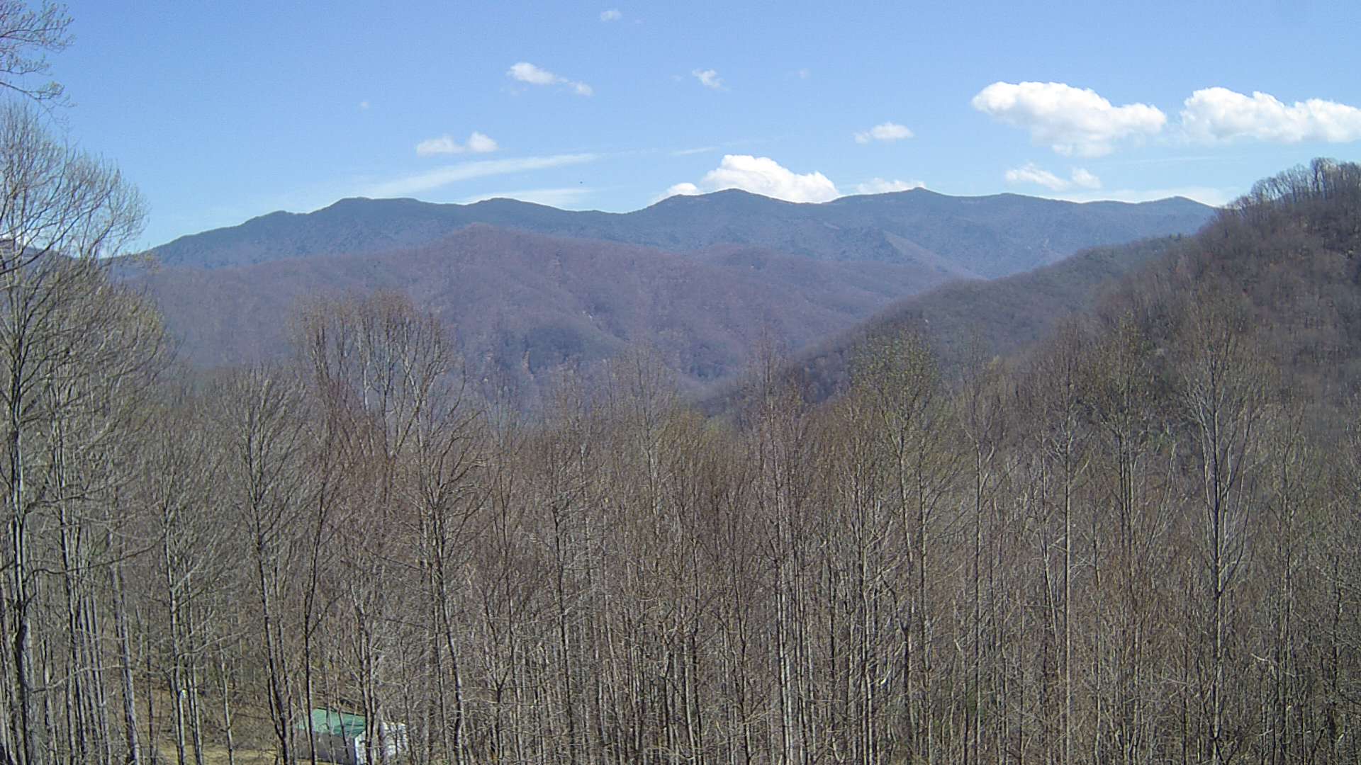 View of Mt. Mitchell and a portion of the Black Mountain Range in Yancey County, NC from a webcam positioned on the south side of Blue Knob pointing southeast. The peaks in the center of the view, from left to right, are Balsam Cone (6600 ft.), Big Tom (6526 ft.), Mt. Craig (6647 ft.), and Mt. Mitchell (6684 ft.)