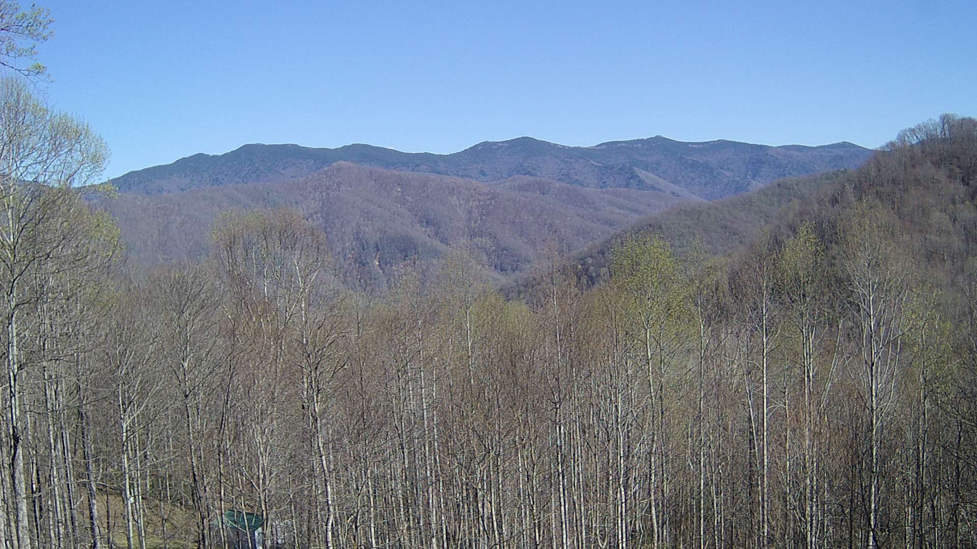 View of Mt. Mitchell and a portion of the Black Mountain Range in Yancey County, NC from a webcam positioned on the south side of Blue Knob pointing southeast. The peaks in the center of the view, from left to right, are Balsam Cone (6600 ft.), Big Tom (6526 ft.), Mt. Craig (6647 ft.), and Mt. Mitchell (6684 ft.)